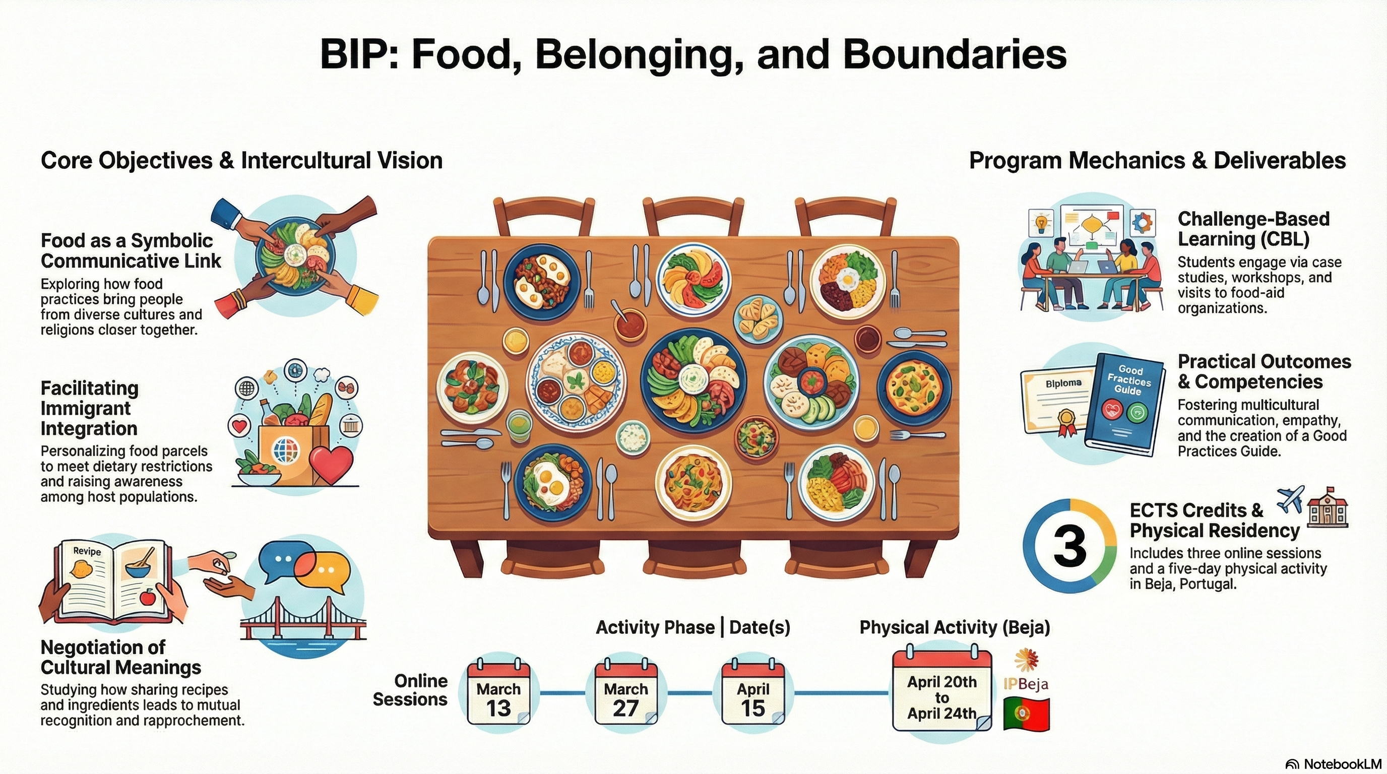 And the methodology is: Methodology: CBL; case studies; visits to organizations that provide food baskets and support the feeding of low-income people from different cultures, countries, and religions; group work and interactive debate sessions; documental research; workshops